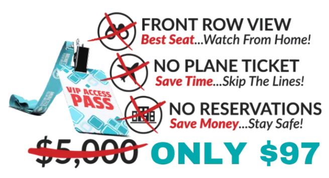 But since it’s virtual, we created a VIP experience that goes above and beyond what you could ever imagine by delivering value, proximity & behind the scenes access that very few people on the PLANET will ever be able to get. This VIP access is extremely limited - we can only accommodate a small percentage of attendees because we want to keep this experience intimate (most people at an event don't get to go backstage, right?) So hurry and sign up before all of the spots are full... Plus you will get these incredible FIRST TIME EVER bonuses with this VIP Package...