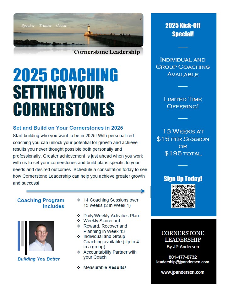 JP Andersen is an inspiring and engaging leader and speaker known for his winning program: In FOCUS. JP excels in helping individuals and organizations get started, get focused, and get better. With over 20 years of experience and as a John Maxwell Certified Speaker, Trainer, and Coach, JP has engaged teams around the world in identifying daily improvements that produce long-term success.